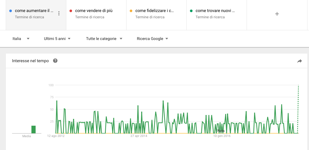 Ho provato a interrogare Google e gli ho chiesto “Google qual è l’andamento delle ricerche delle seguenti frasi o domande?”: