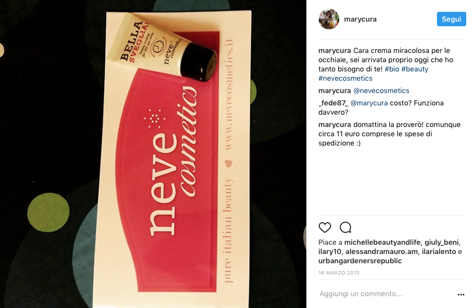 Avevo comprato una prodotto per le occhiaie su NeveCosmetics dopo aver letto un post di una ragazza che chiedeva aiuto per combattere (e non semplicemente coprire) le sue occhiaie.